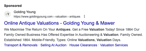 For auction houses, it can help to find new vendors and bidders who are searching for relevant subjects on Google. Your advert will only appear to qualified audiences, and you only pay when someone clicks your ad. It’s a win-win situation!